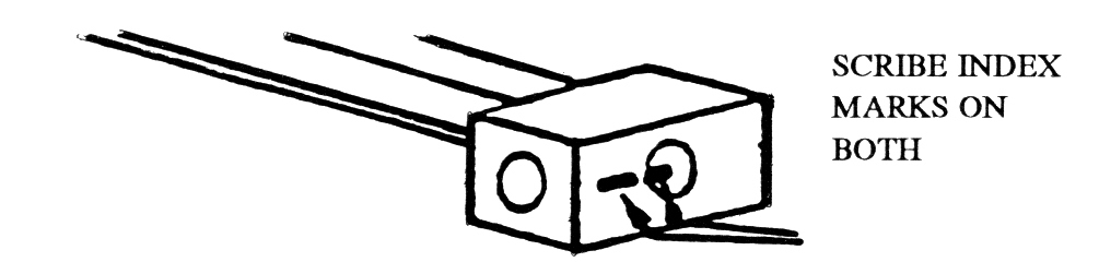 4. Before proceeding further, scribe a mark on the bottom of the shaft and shaft block (see figure).